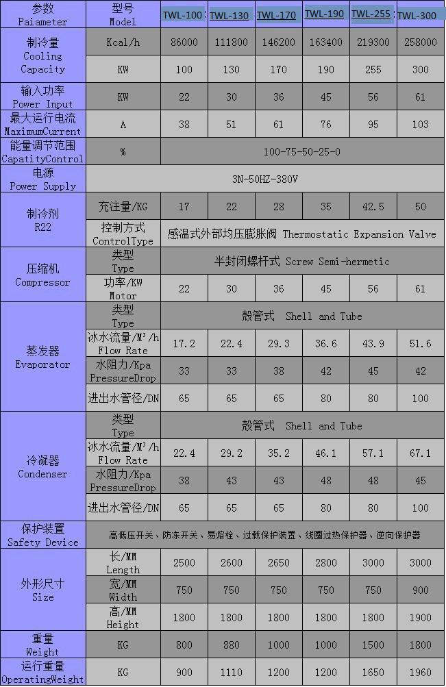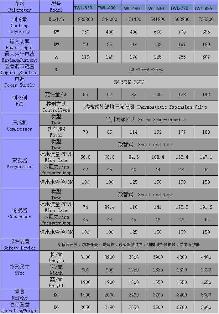trolled ±2℃名義制冷量是依據(jù)冰水入口溫度12℃,出口溫度7℃,環(huán)境溫度35℃得出。